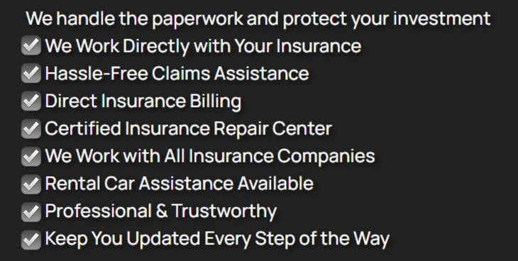 We streamline the insurance claims process by working directly with your provider to ensure fair and efficient coverage. Our team manages all the necessary documentation, provides accurate damage assessments, and handles direct billing. This allows you to focus on your daily life while we take care of the details. Let us make your insurance experience hassle-free and straightforward. Contact us to learn how we can support you through your claim.